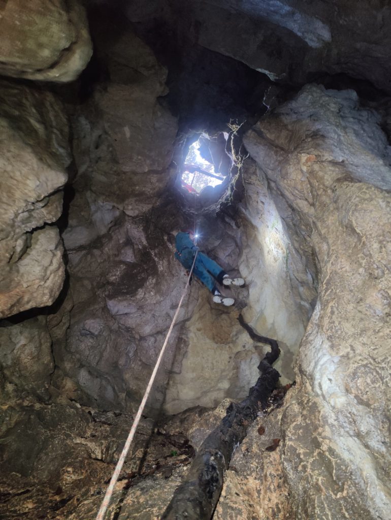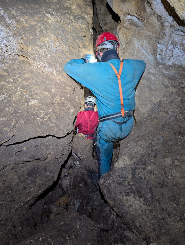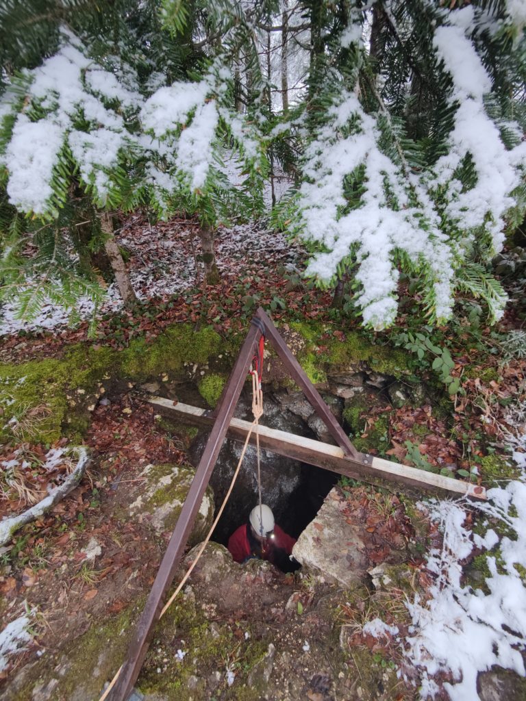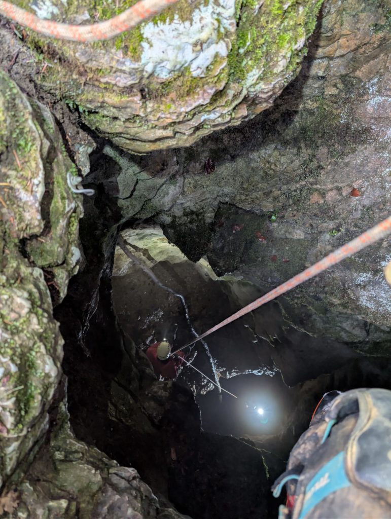 Une fois sur place la corde est rapidement mise en place et les explications sont données aux deux novices, suite à quoi Jonas descend afin de les réceptionner pendant que Guillaume les supervises en haut du puits.