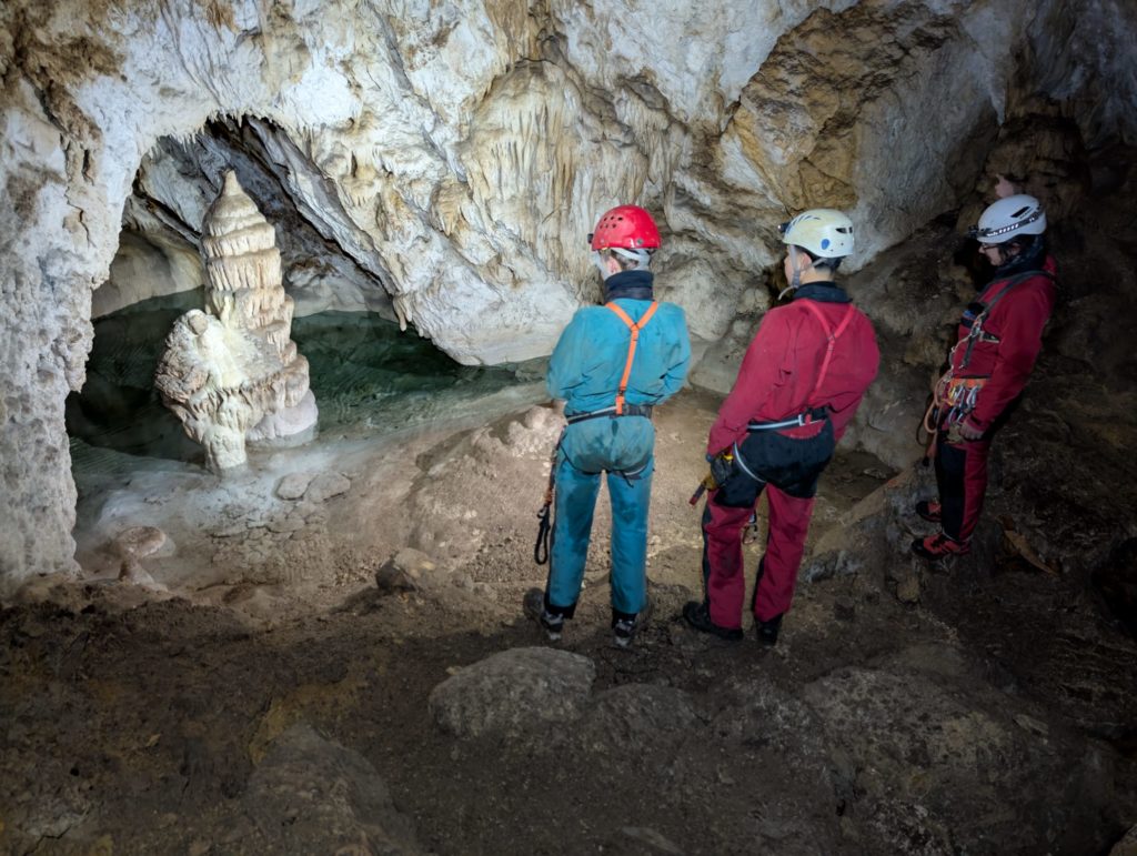 Après avoir vainement chercher des niphargus dans le lac et donné un rapide cours sur les concretions, on remonte pour redescendre de l’autre côté afin de profiter de la partie plus étroite de la grotte.