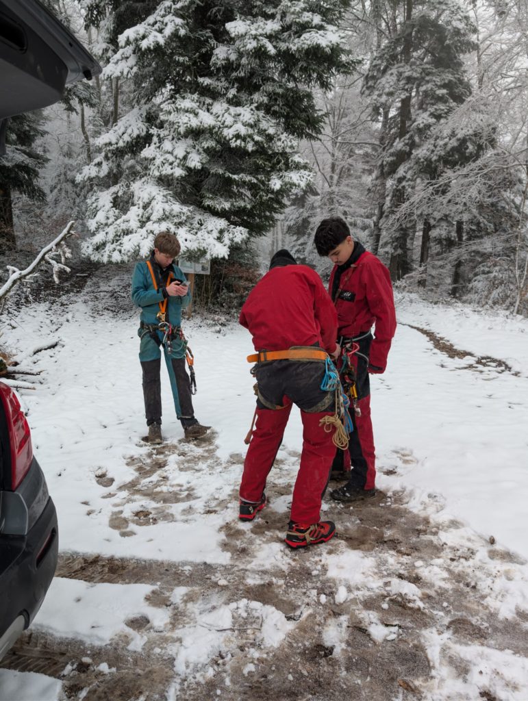 Le rendez-vous est donné au local à 9h, et chose assez rare pour le souligner, tous les participants étaient en avance ! Après un rapide contrôle du matériel préparer le jour avant par Guillaume, on se rend sur place avec un beau paysage enneigé.